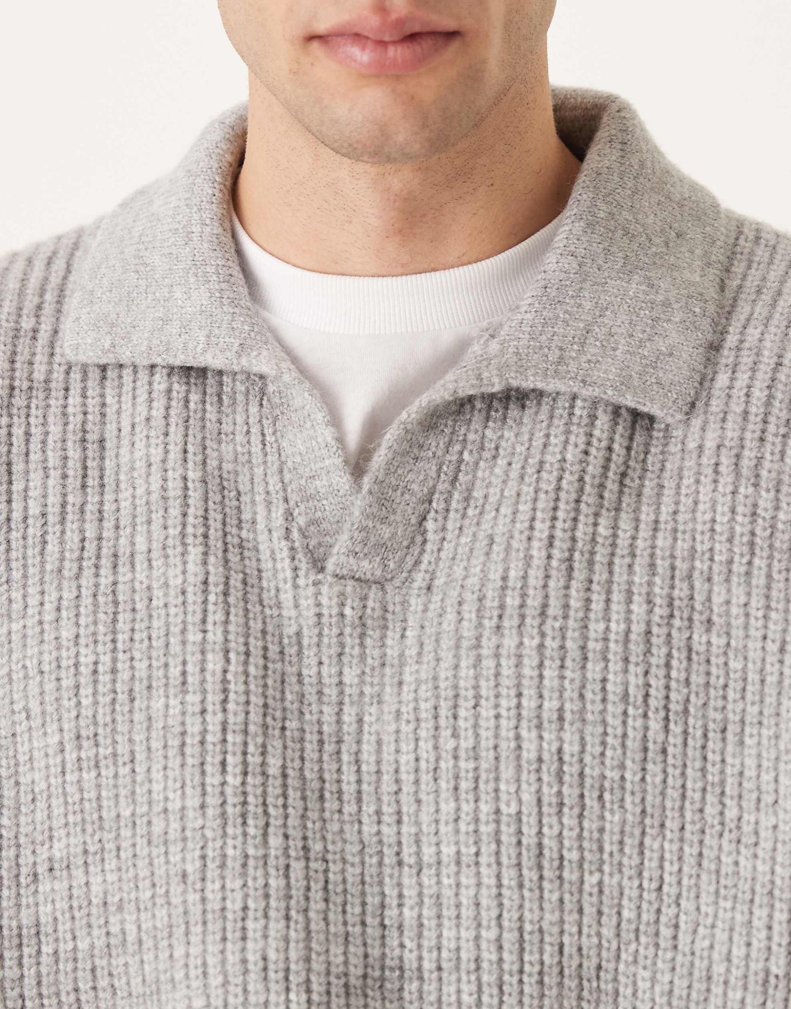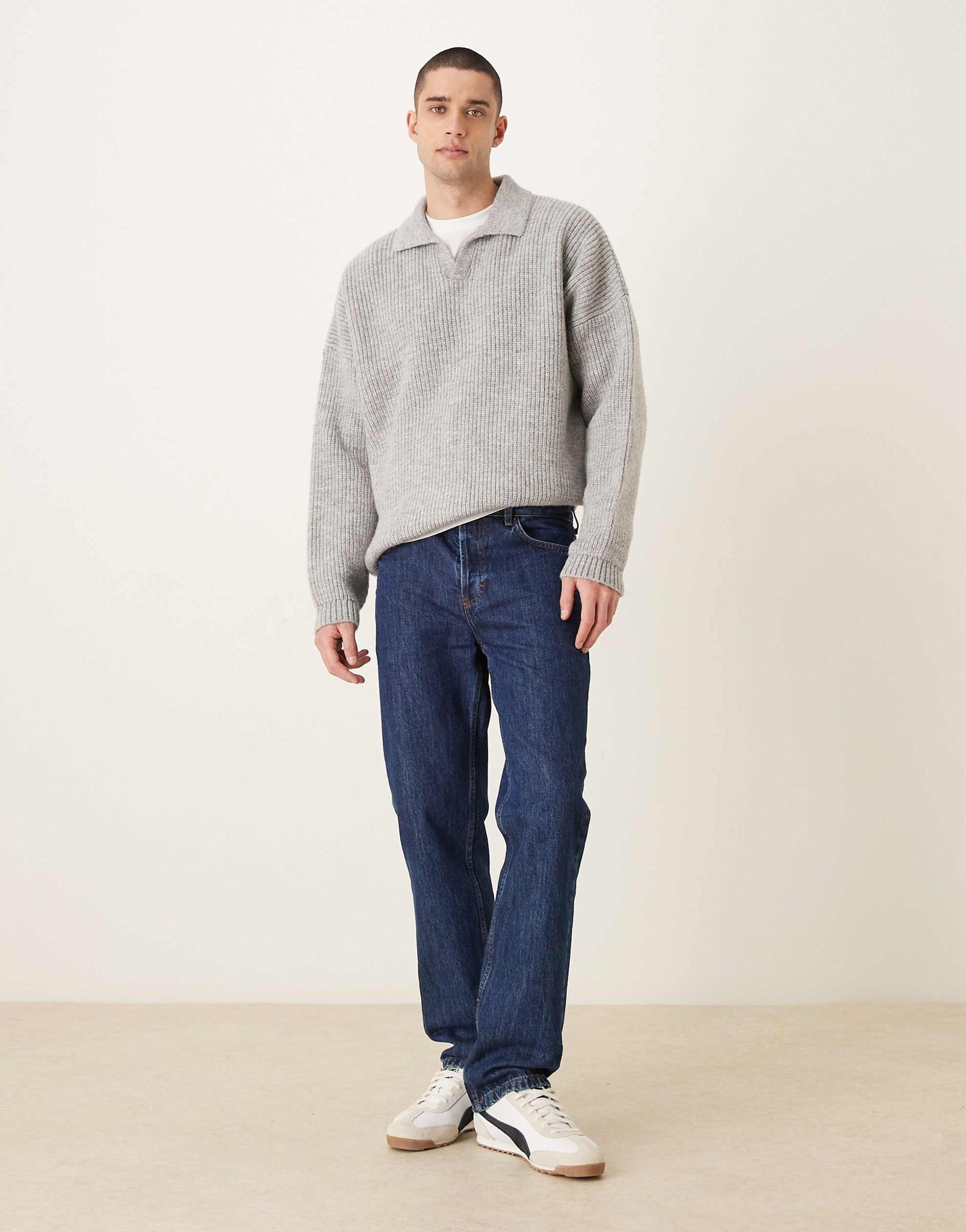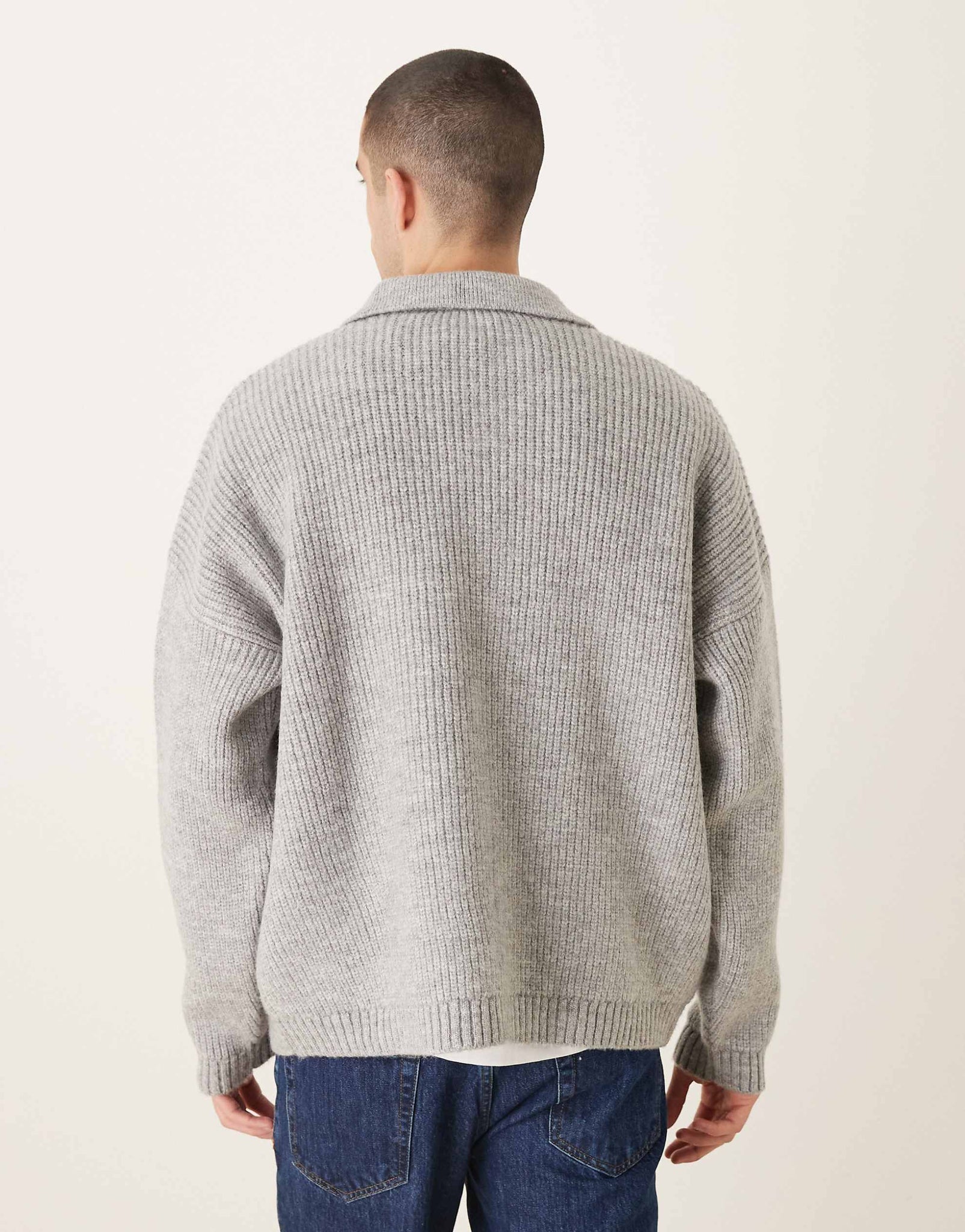 DESIGN super oversized boxy fit knitted fisherman rib notch neck jumper grey
