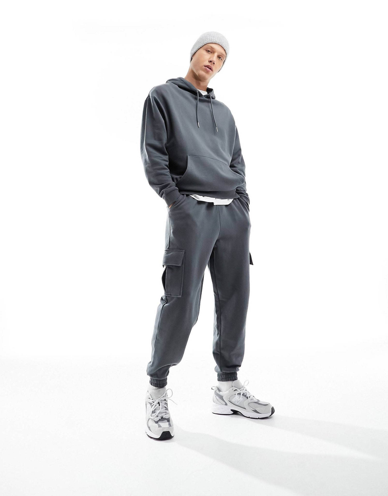 DESIGN tracksuit oversized hoodie joggers charcoal