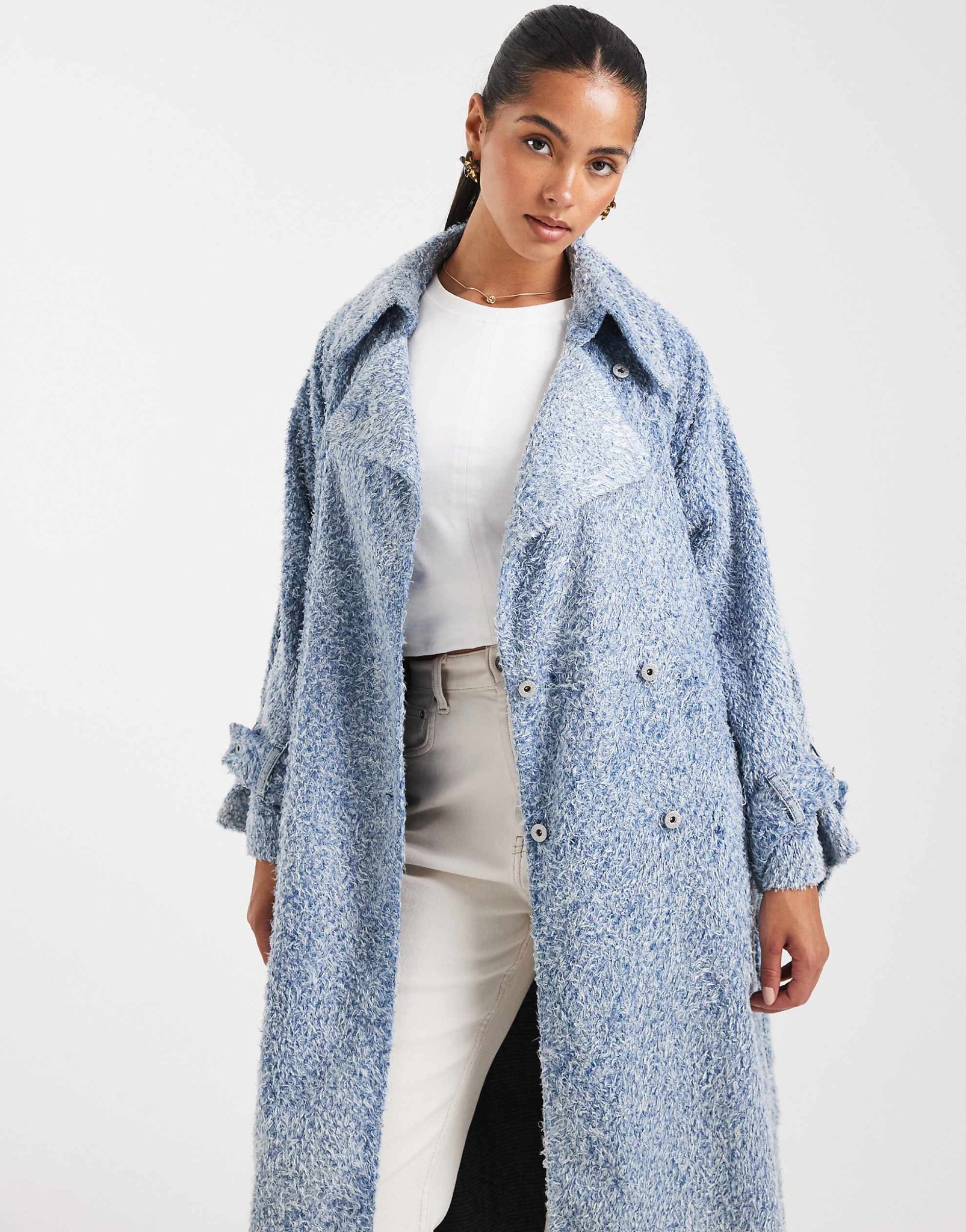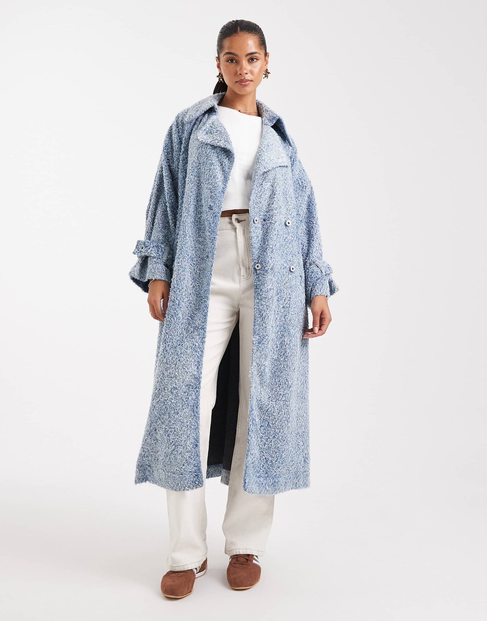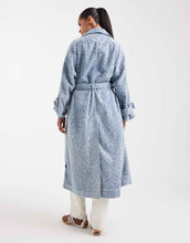 HUGO BLUE Garena oversized hairy denim trench coat mid blue wash