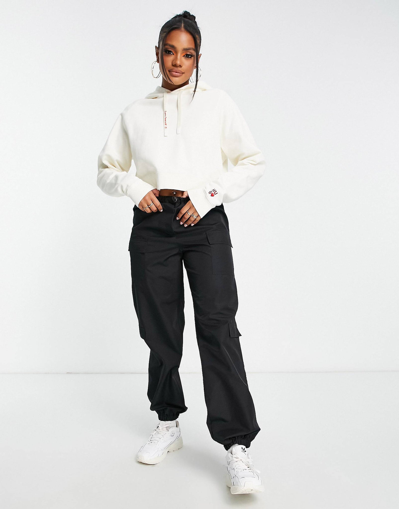 HUGO paris logo hoodie cream