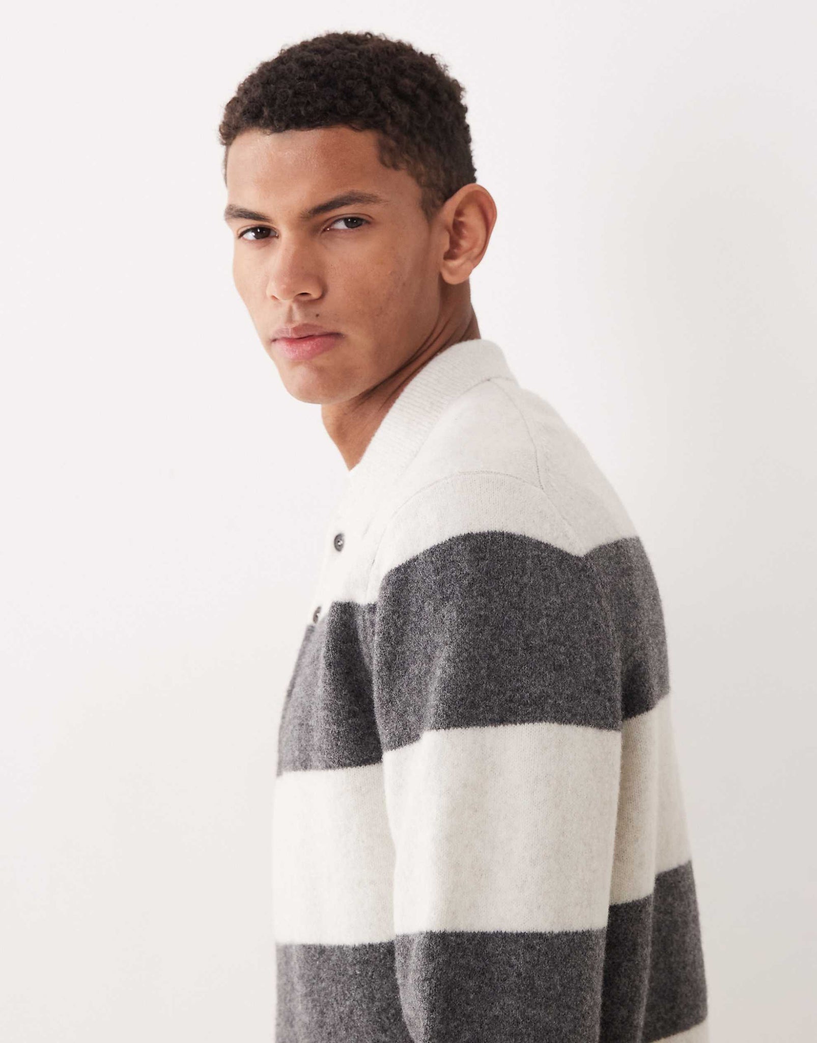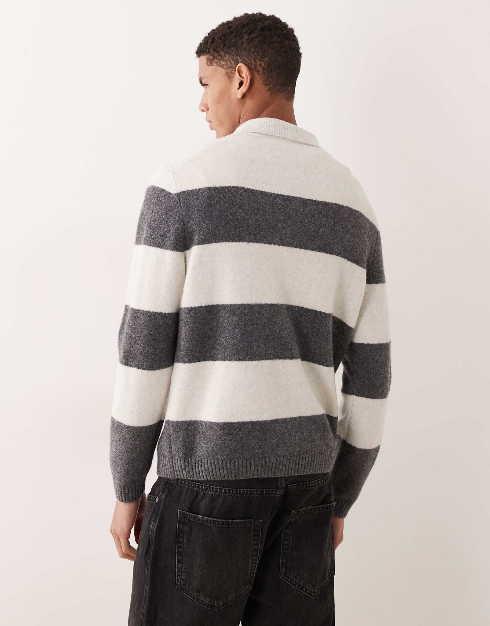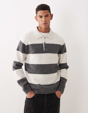 Mango striped knitted polo jumper ecru