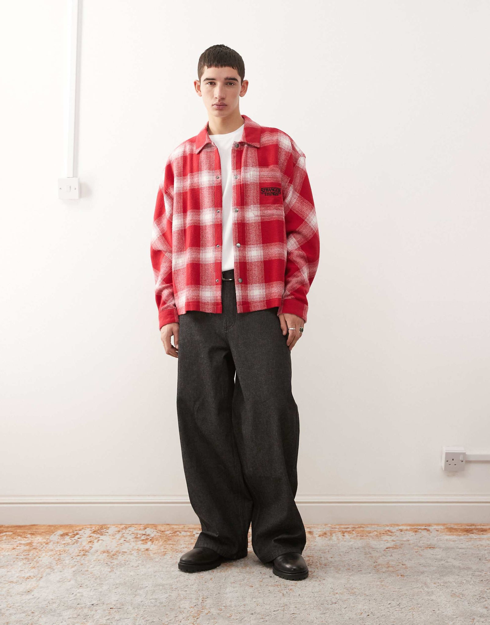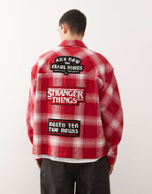 Reclaimed Vintage x Stranger Things brushed flannel shirt boucle badges red white