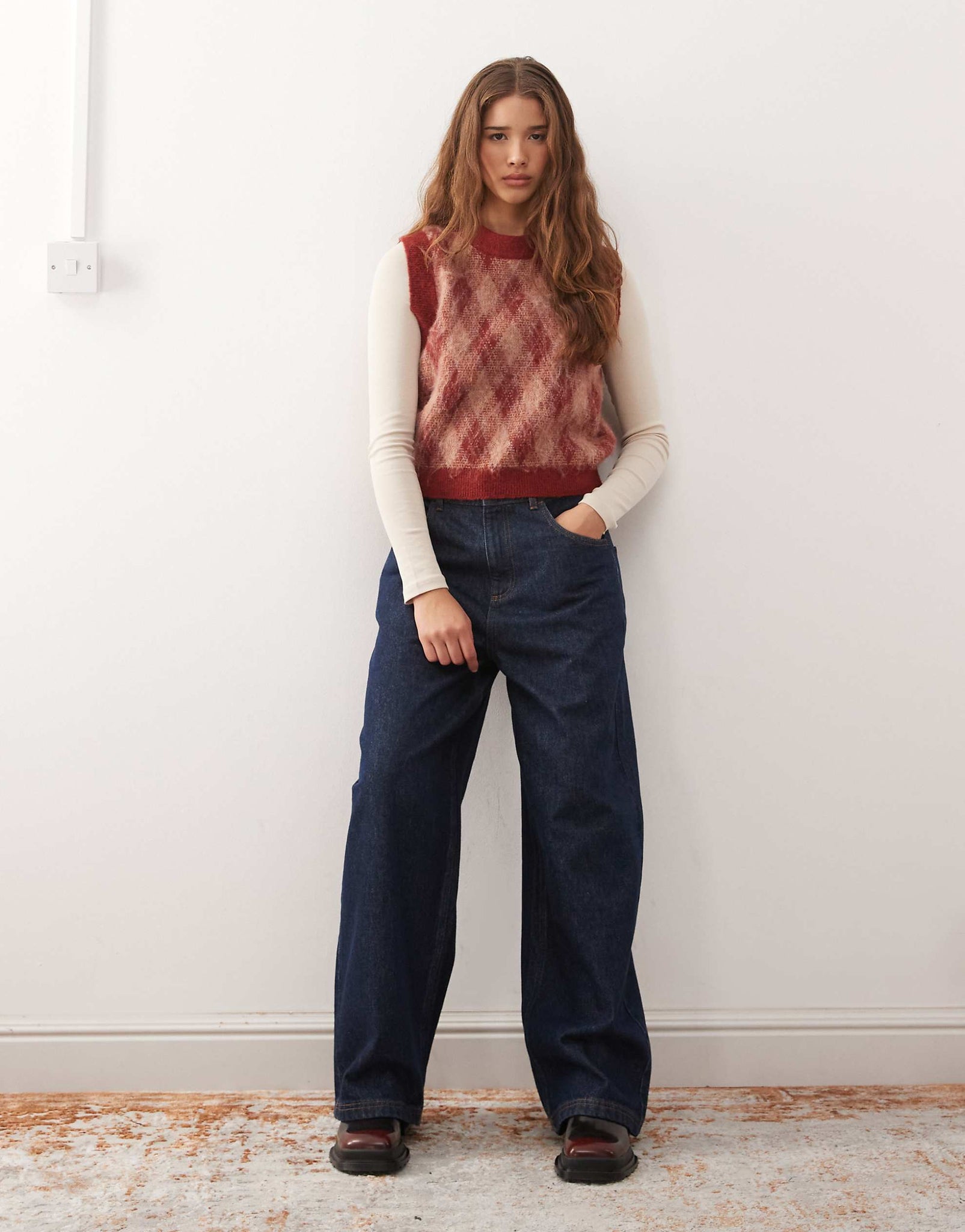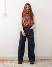 Reclaimed Vintage brushed knitted tank burgundy argyle print