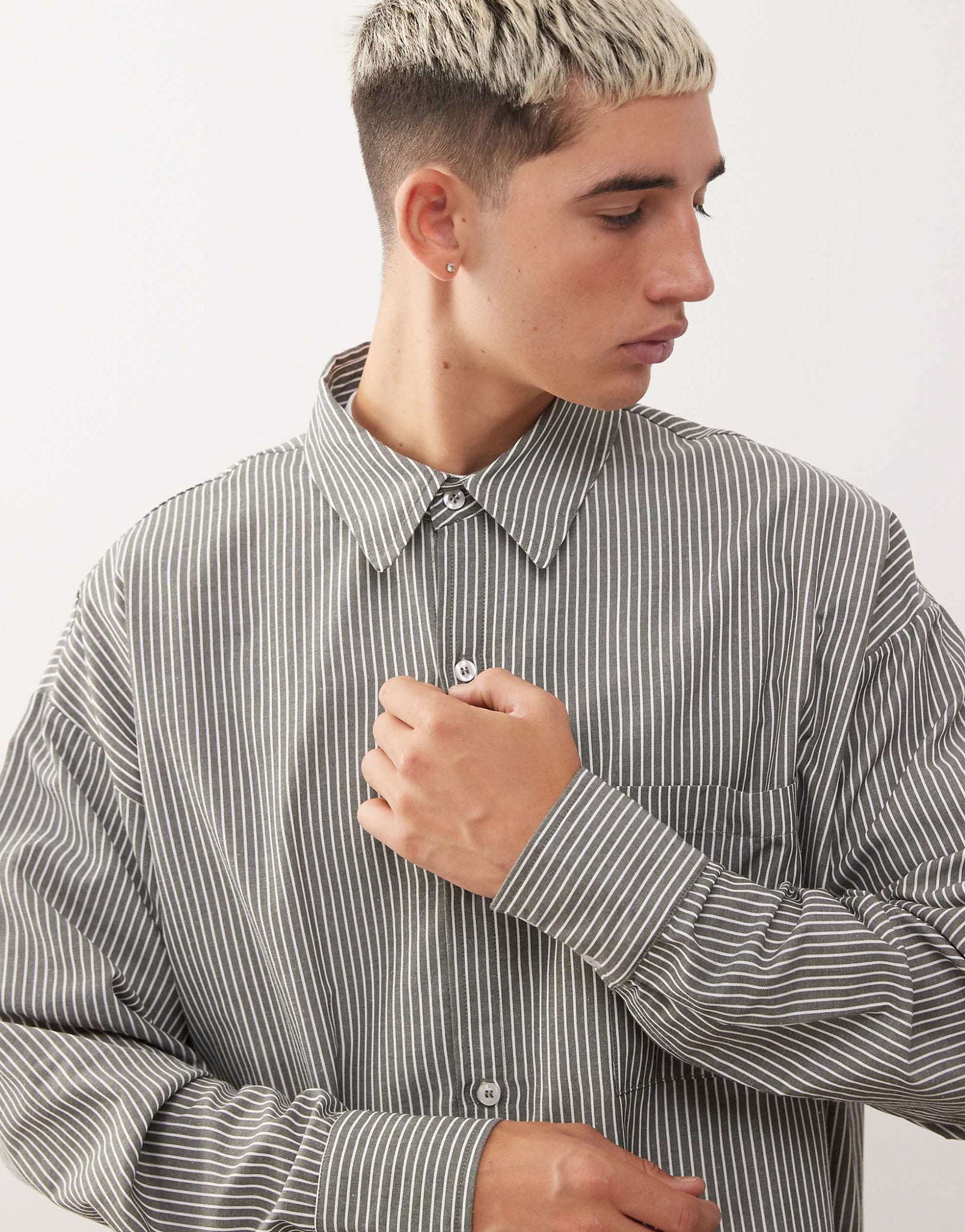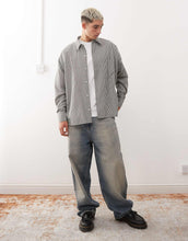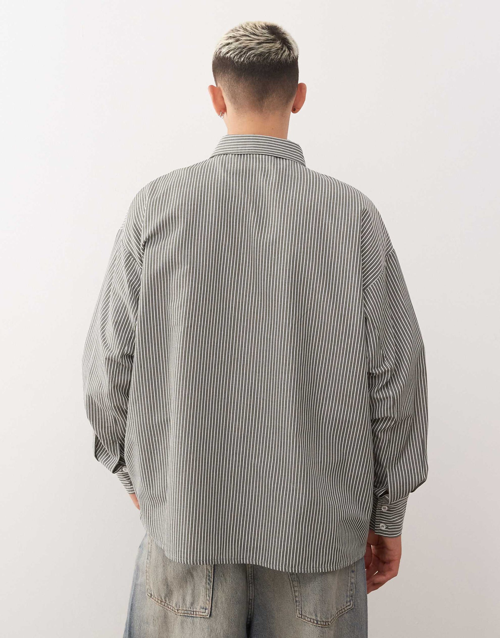 Reclaimed Vintage long sleeve boxy shirt khaki pinstripe