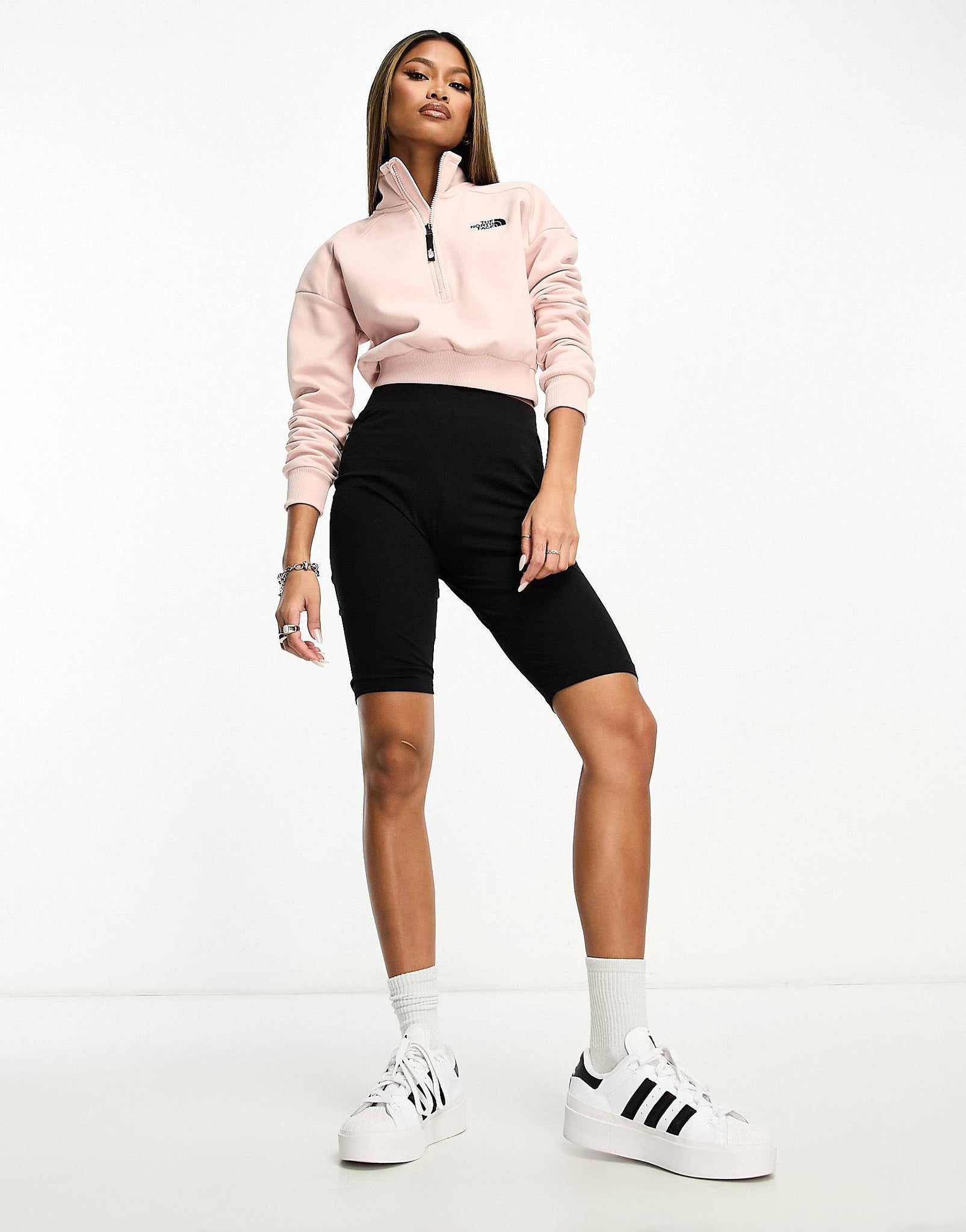 The North Face cropped 1/4 zip sweatshirt pink
