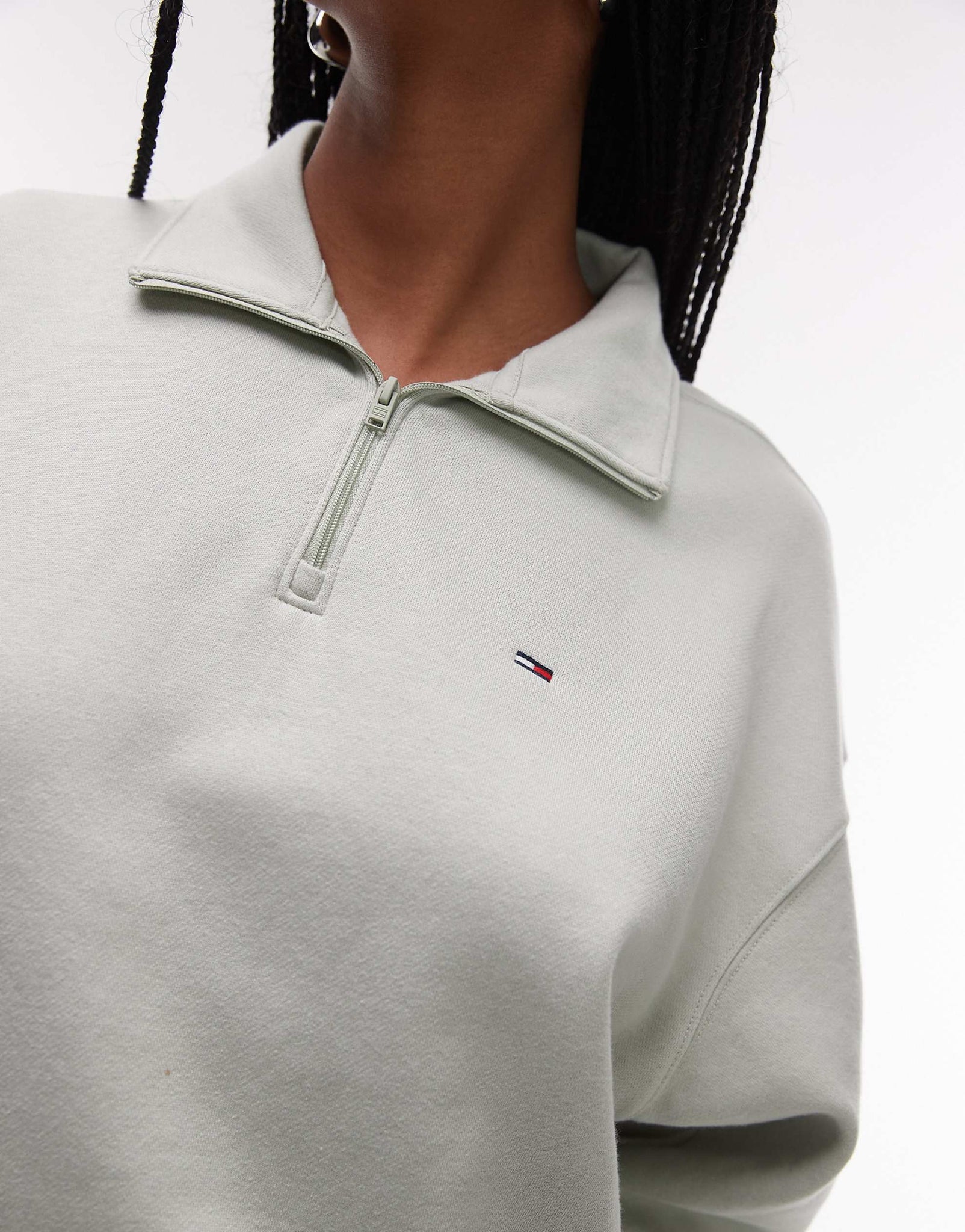 Tommy Jeans boxy crop 1/4 zip cropped jumper sage