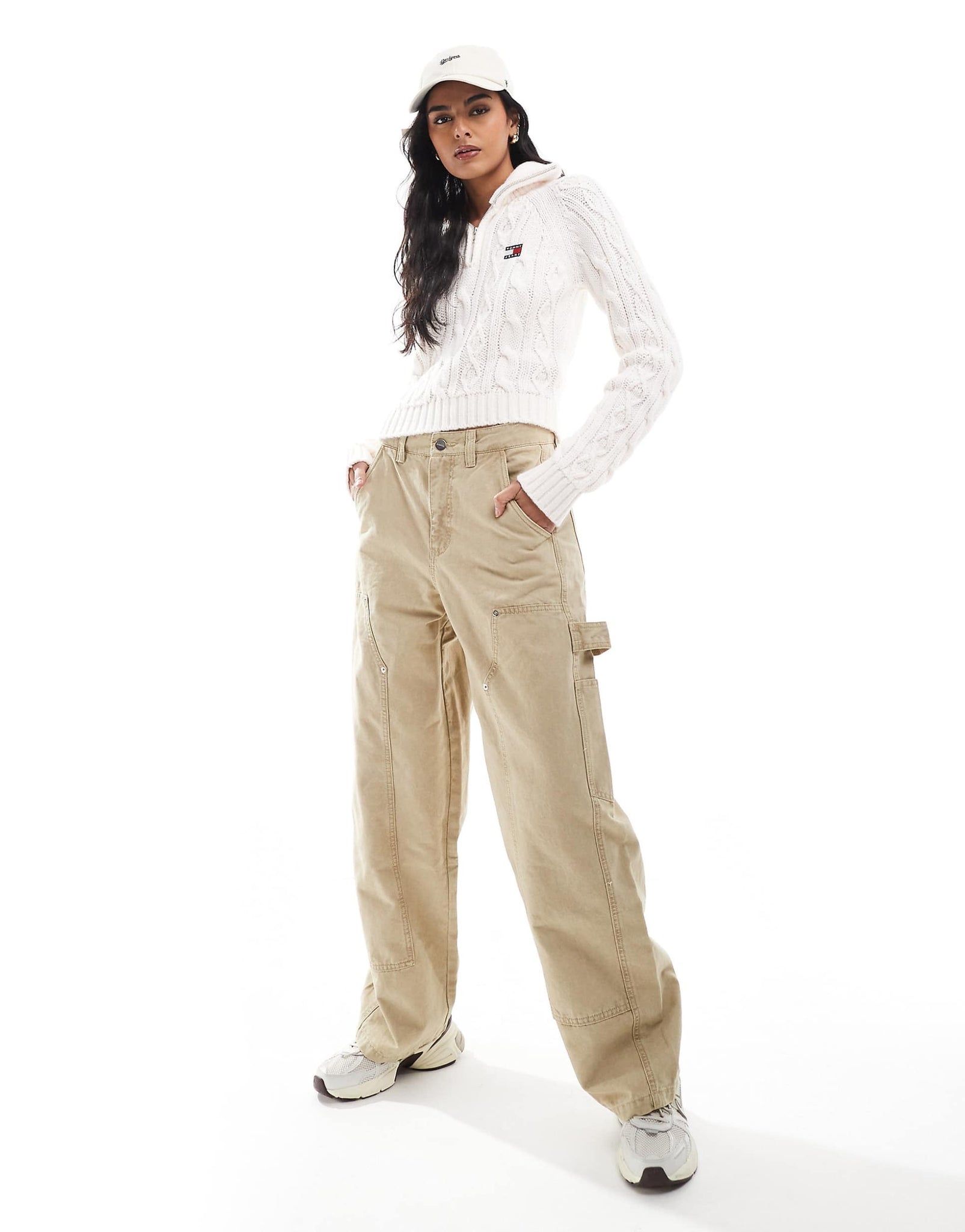 Tommy Jeans cable knit 1/4 jumper off white