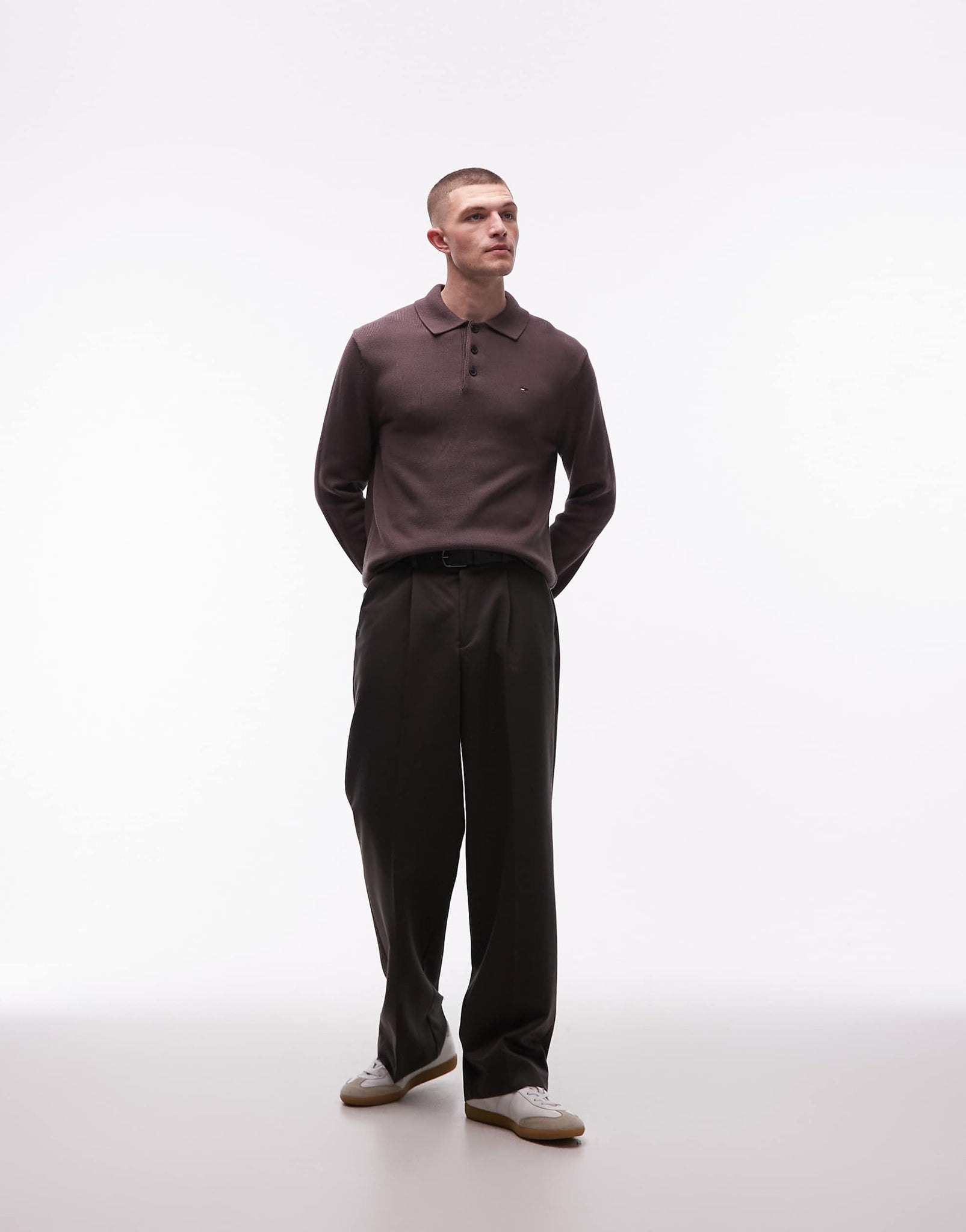 Tommy Jeans chest logo long sleeve polo shirt brown