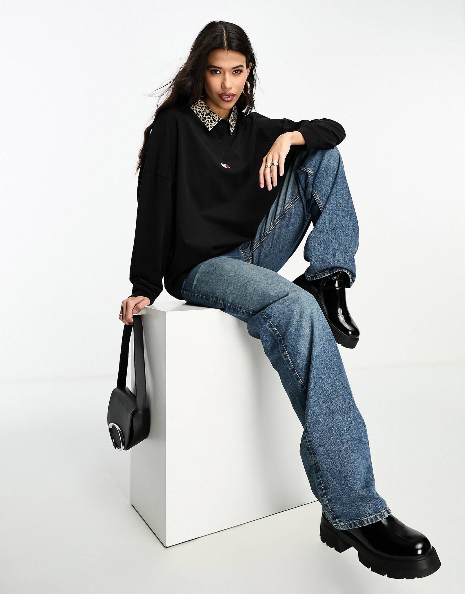 Tommy Jeans oversized long sleeve leopard black
