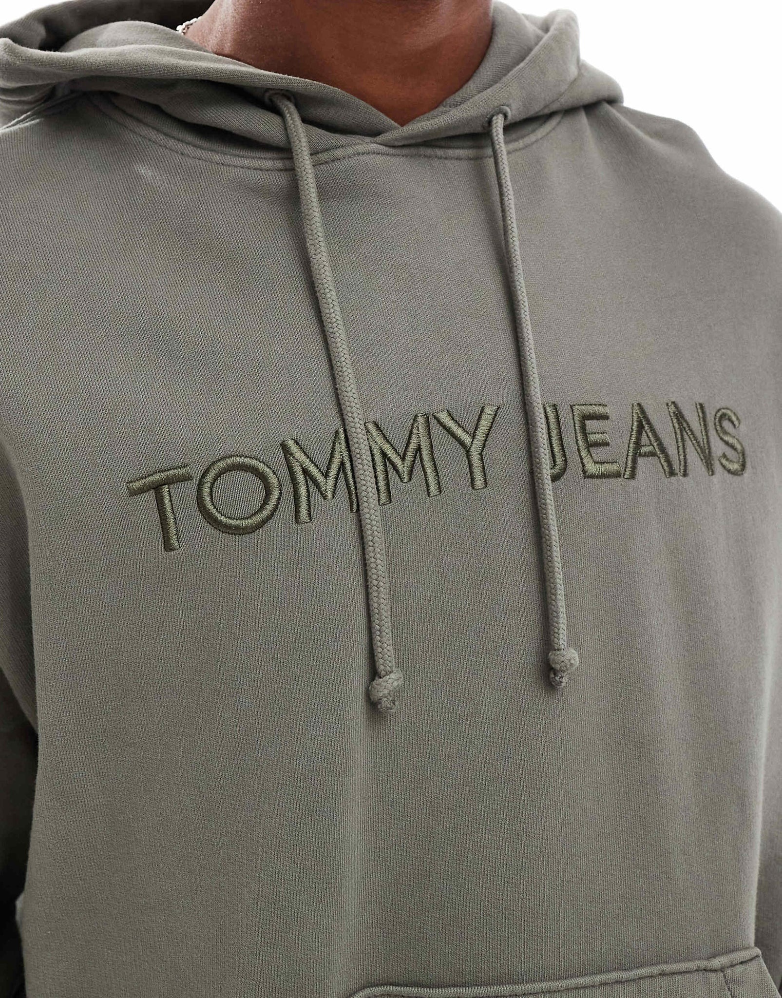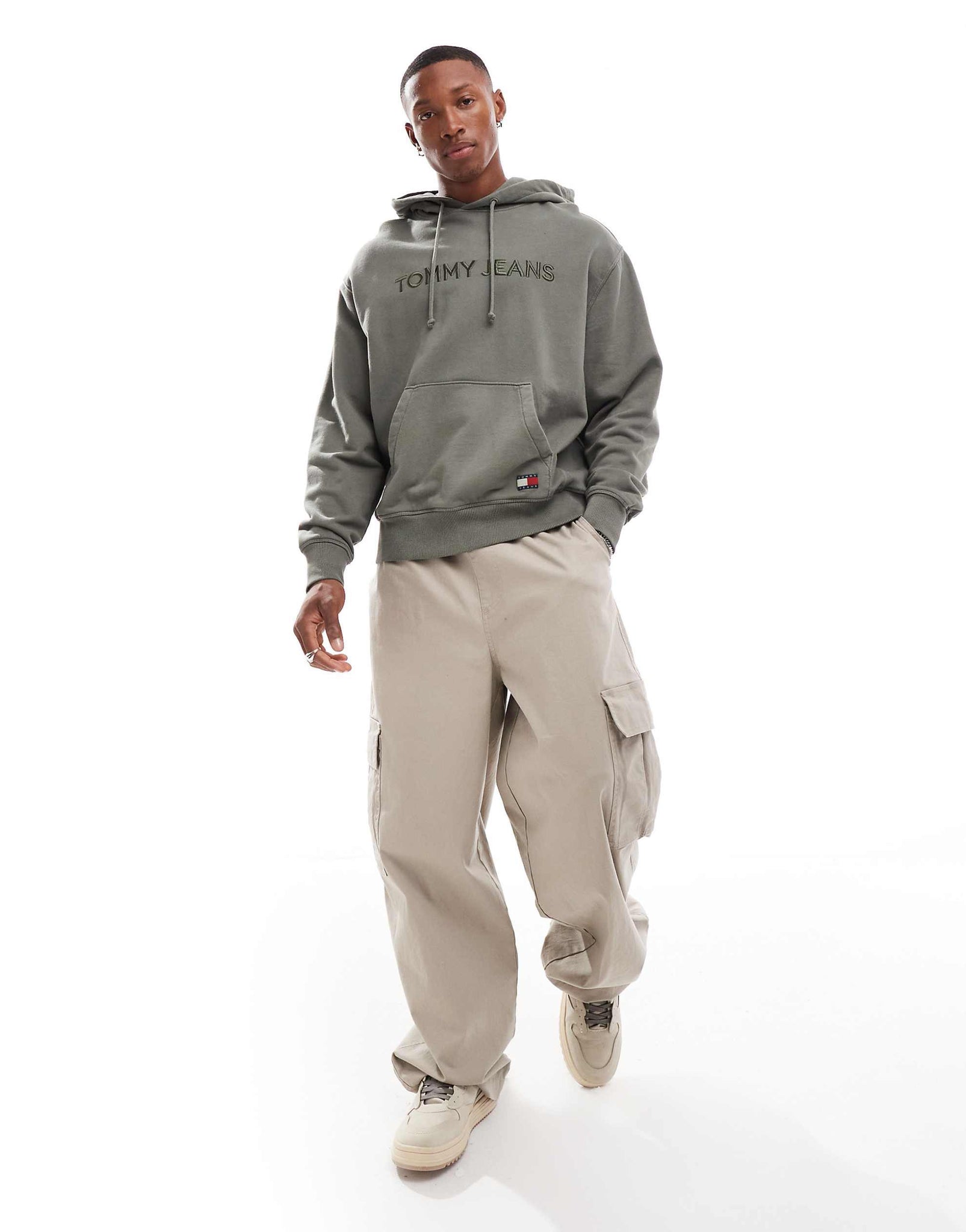 Tommy Jeans tonal linear logo hoodie washed khaki