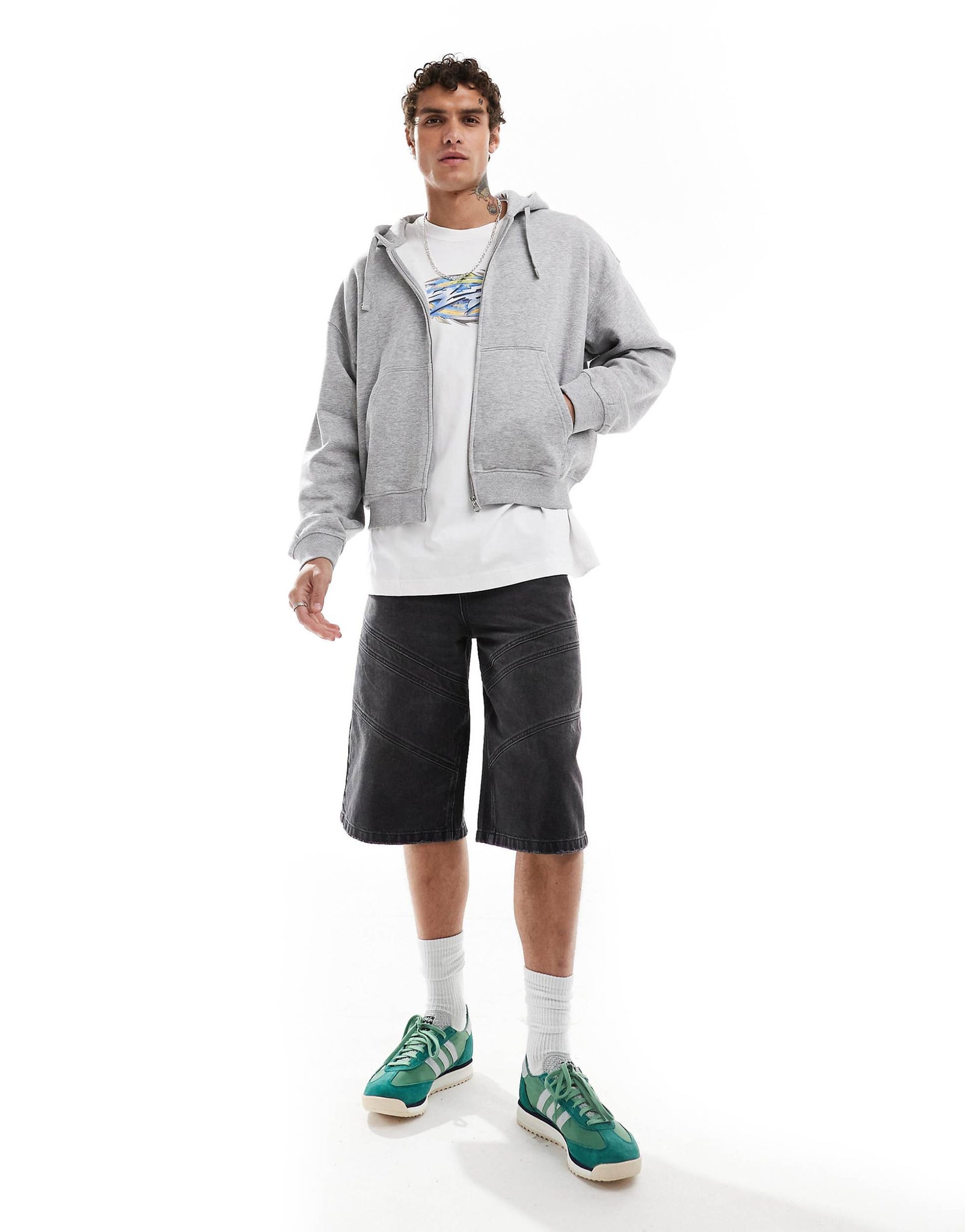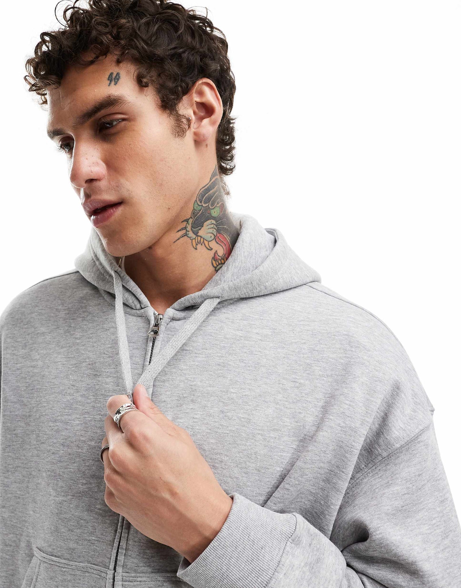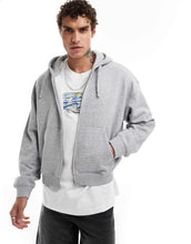 Weekday boxy fit zip through hoodie grey melange