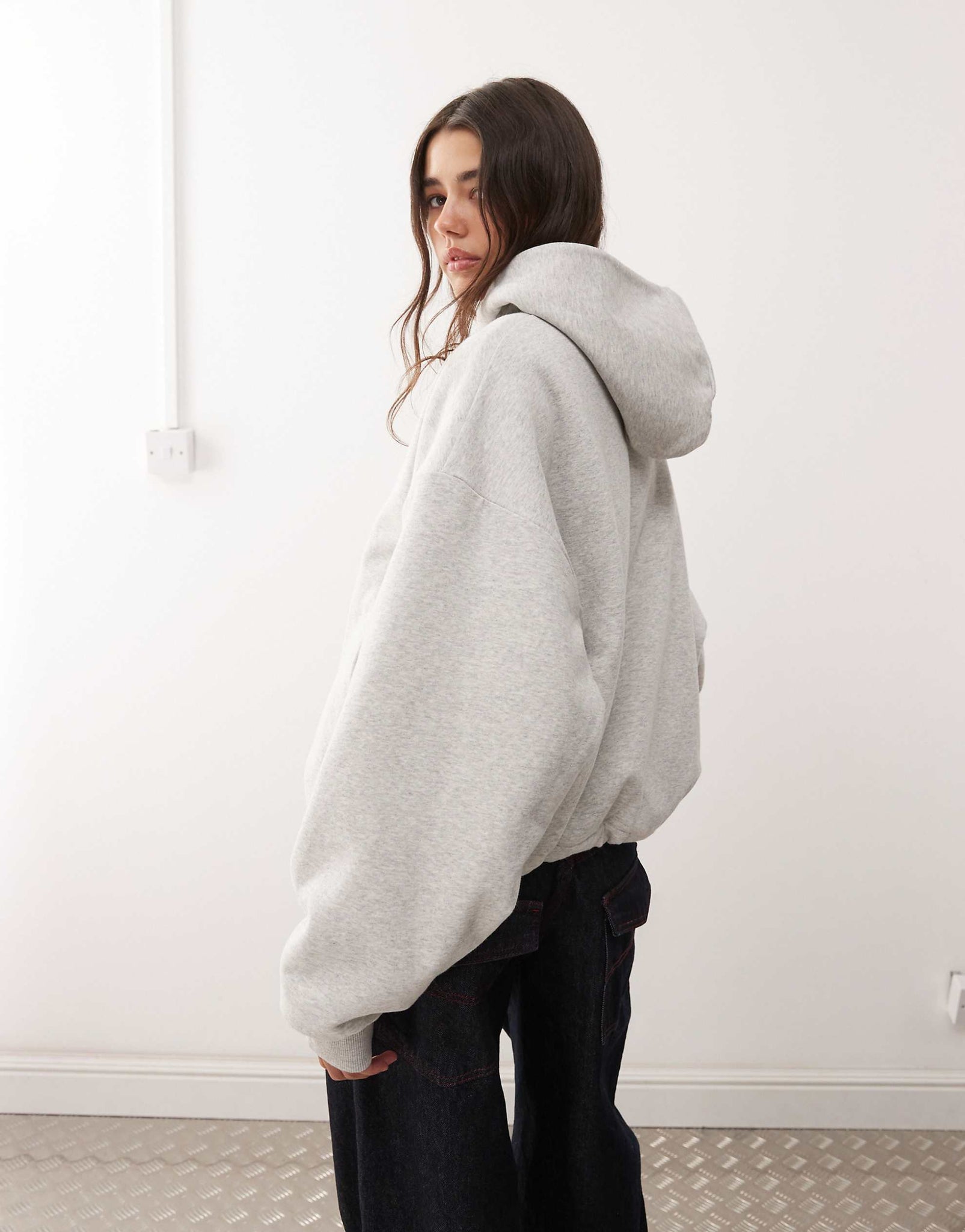 Weekday oversized hoodie borg lining grey melange